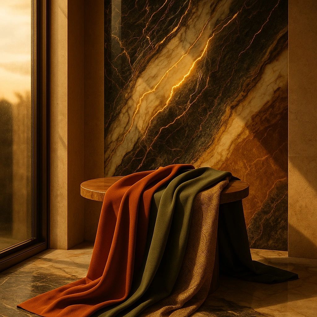 Rooted in Switzerland, we represent Spanish and Italian makers who blend heritage and innovation from century-old textile mills to sculptural surfaces in stone and beyond.