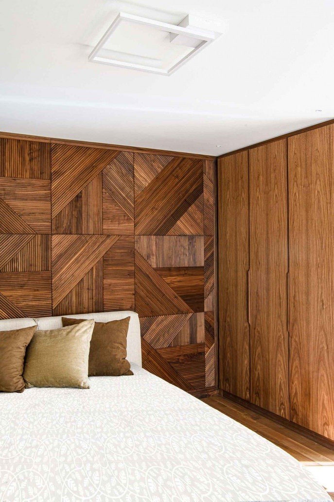 Classic solutions, featuring figurative decorations reminiscent of the early 20th century and abstract geometric elements that add a contemporary allure. This extraordinary villa takes us on a journey through the beauty of interior design, embodied in ways that are profoundly diverse yet able to form a smooth, stylish whole. Wood is the key element in settings in which Arte Brotto solutions showcase their impressive versatility, with the furniture and accessories complemented by the extraordinary 3D wood panelling and bespoke solutions crafted to fulfil the customer’s desires through the creative intuition of the designer. The classic designer Canova wood panelling in the living area is joined by the sophisticated, contemporary Tribeca 3D boiserie in the bedroom area, along with the Leonardo Walnut wood bed and bedside tables and the upholstered bench from the Segreti collection. Particularly striking is the custom-built wine cellar.